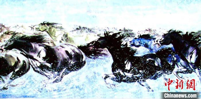 如今,當他再回到新疆,他發(fā)現(xiàn)牧民的生活已發(fā)生巨大變化,新疆的旅游資源不斷開發(fā)完善,伊犁天馬文化節(jié)吸引眾多游客。牧民們逐漸有了經(jīng)商意識,帶著游客們探尋新疆的美景、美食,日子過得紅紅火火。姚迪雄也將這份喜悅揮毫于畫卷上,繪制伊犁的發(fā)展變化。比如,他的作品《揚鬃奮蹄歌大風》就描繪天馬浴河的景象,而“天馬浴河”是前往伊犁昭蘇的游客們最期待的節(jié)目之一。他將這幅作品送給了新疆伊犁哈薩克自治州昭蘇縣,作為游子獻給家鄉(xiāng)的一份禮物。