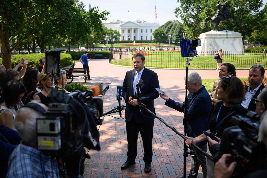 8月4日,德國副總理兼財(cái)政部長(zhǎng)克林拜爾在華盛頓會(huì)見記者。新華社/法新
