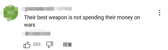 有美國網(wǎng)友表示,中國最好的“武器”,是不把錢花在發(fā)動(dòng)戰(zhàn)爭上。