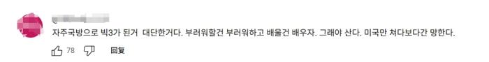 還有韓國網(wǎng)友說,韓國想要發(fā)展,應(yīng)該和中國搞好關(guān)系。