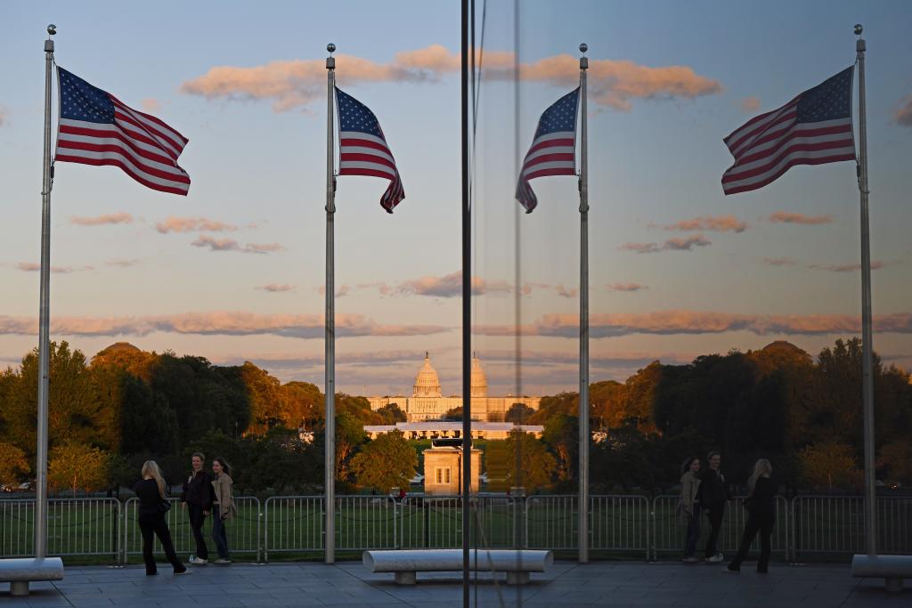 10月8日,在美國華盛頓,人們以國會(huì)大廈為背景留影。新華社記者李睿攝