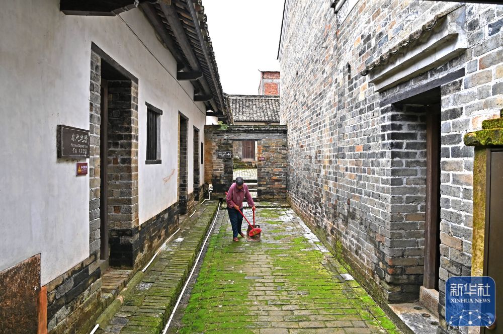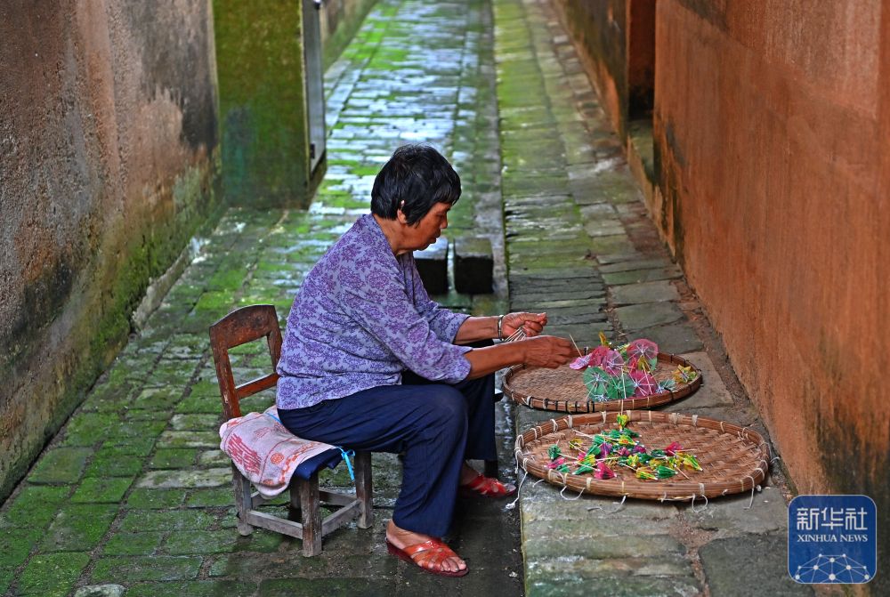 8月16日,一名村民在大蘆村一條小巷里穿行。