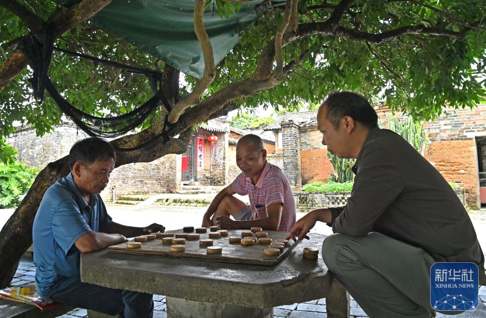 8月16日,幾名村民在大蘆村古宅前的樹(shù)下下棋。