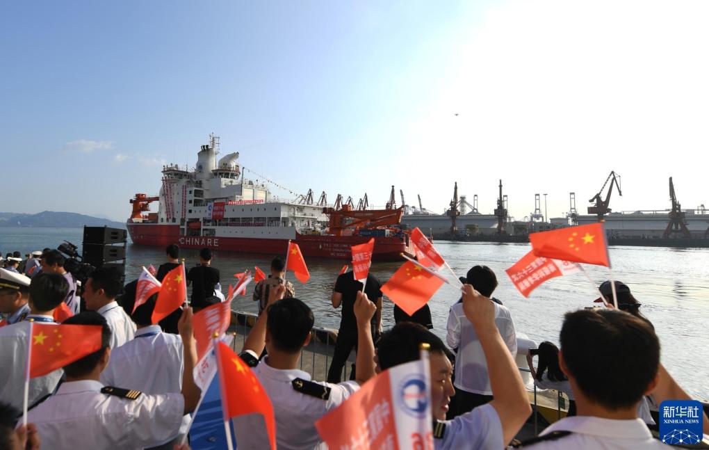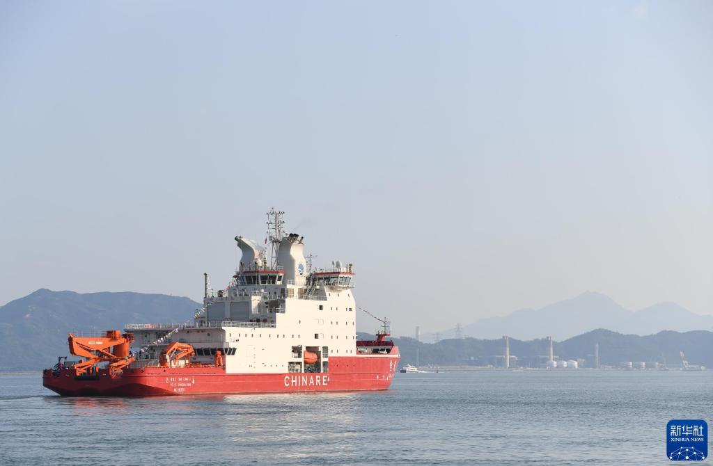 2024年11月1日,執(zhí)行中國第41次南極考察任務(wù)的“雪龍”號(hào)和“雪龍2”號(hào)船從廣州南沙國際郵輪母港碼頭出發(fā)。新華社記者 黃國保 攝