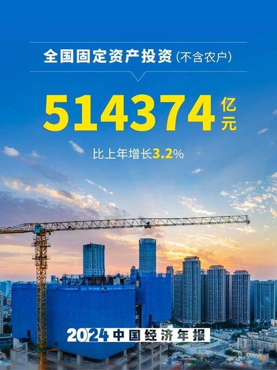 6、全國固定資產(chǎn)投資(不含農(nóng)戶)514374億元,比上年增長3.2%。