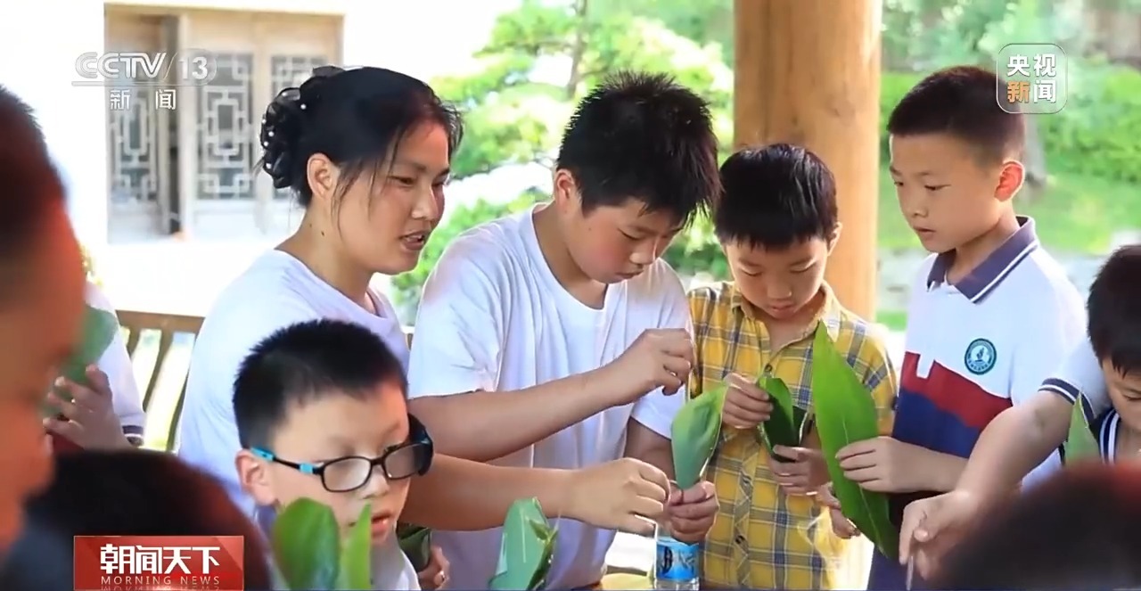 游客 周子菱:學(xué)會了自己動手包粽子,還學(xué)到了很多關(guān)于粽子的知識,知道粽葉要提前煮熟才能變軟,繩子要交叉綁,粽子才不會散。