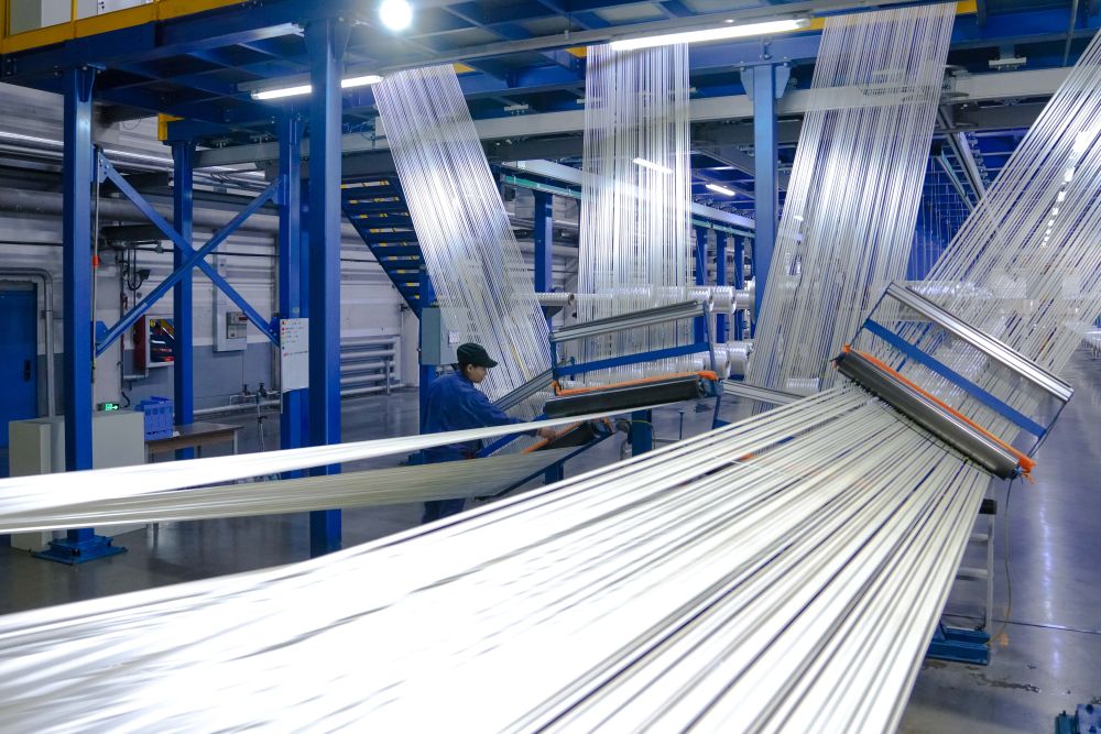 走進(jìn)吉林化纖公司紡絲車(chē)間,一束束潔白的碳纖維原絲如瀑布傾瀉而出,只有鋼板尺寬窄薄厚的原絲里竟有50000根單絲。從傳統(tǒng)紡織進(jìn)軍新材料,吉林化纖研究團(tuán)隊(duì)苦干10年,以“寧可青絲變白發(fā),也要白絲變黑絲”的精神打破國(guó)際封鎖,研究出屬于自己的大絲束碳纖維。