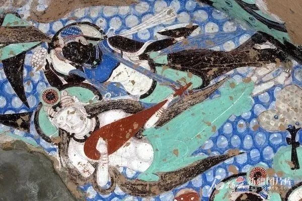 克孜爾石窟壁畫中的伎樂(lè)天。資料圖