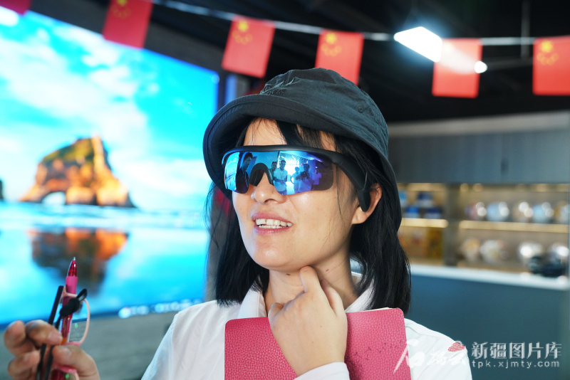 6月30日,在喀什綜合保稅區(qū)全球貿(mào)易通新疆喀什中亞出口商品選品中心,記者王娜體驗(yàn)了一款出口的智能眼鏡,該眼鏡可隨機(jī)翻譯一百多種語(yǔ)言。
