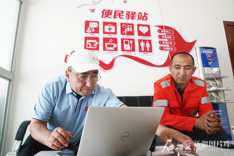 7月1日,在喀什公路事業(yè)發(fā)展中心疏附養(yǎng)護(hù)所蓋孜養(yǎng)護(hù)站,攝影記者約提克爾·尼加提利用短暫的等待時(shí)間整理圖片,準(zhǔn)備發(fā)稿。