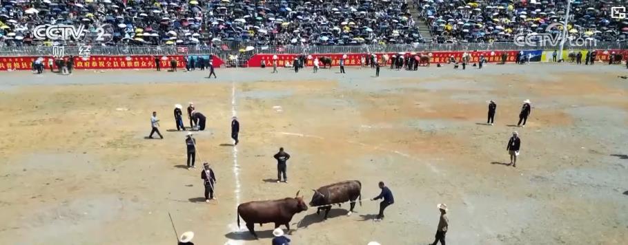 在位于四川涼山的普格縣,傳統(tǒng)點火儀式拉開了當(dāng)?shù)叵盗谢顒拥男蚰唬瑐鹘y(tǒng)歌舞千人朵洛荷驚艷四方。身著五彩彝繡盛裝的姑娘們手持黃傘,隨悠揚(yáng)旋律翩躚起舞。斗牛比賽在普格縣火把廣場上演巔峰對決,強(qiáng)壯的公牛的每一次抵角、閃躲都引得現(xiàn)場一片歡呼。
