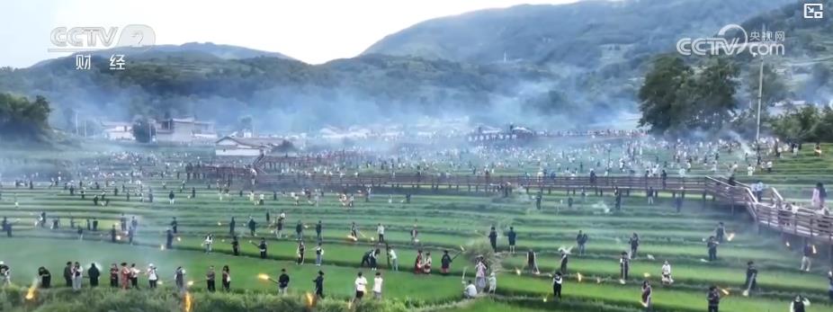 在越西縣,夏季避暑暨火把季系列活動也輪番上演。除了有精美絕倫的非遺巡游,和極具視覺沖擊力的彝族傳統(tǒng)競技,在越西縣普雄鎮(zhèn)陽坡村的梯田上,一場原生態(tài)稻田火把秀更是吸引數(shù)以千計的游客前來。大家跟隨當(dāng)?shù)鼐用裨诘咎镩g點燃火把,用火焰驅(qū)逐害蟲。游客們手中的火把與稻田連成一片,場面蔚為壯觀。