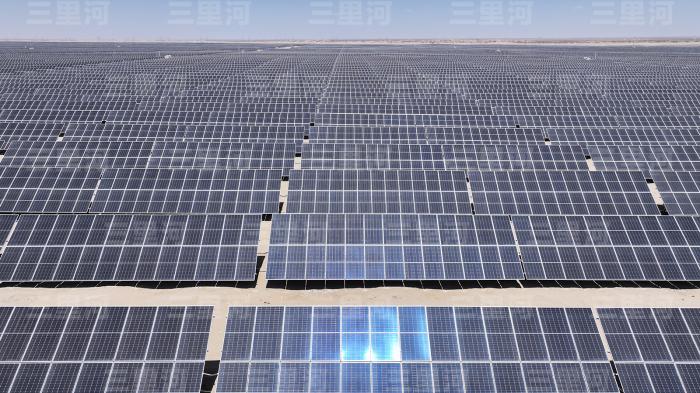 青海油田100萬(wàn)千瓦光伏電站。(無(wú)人機(jī)照片)圖/中新社記者 馬銘言 攝