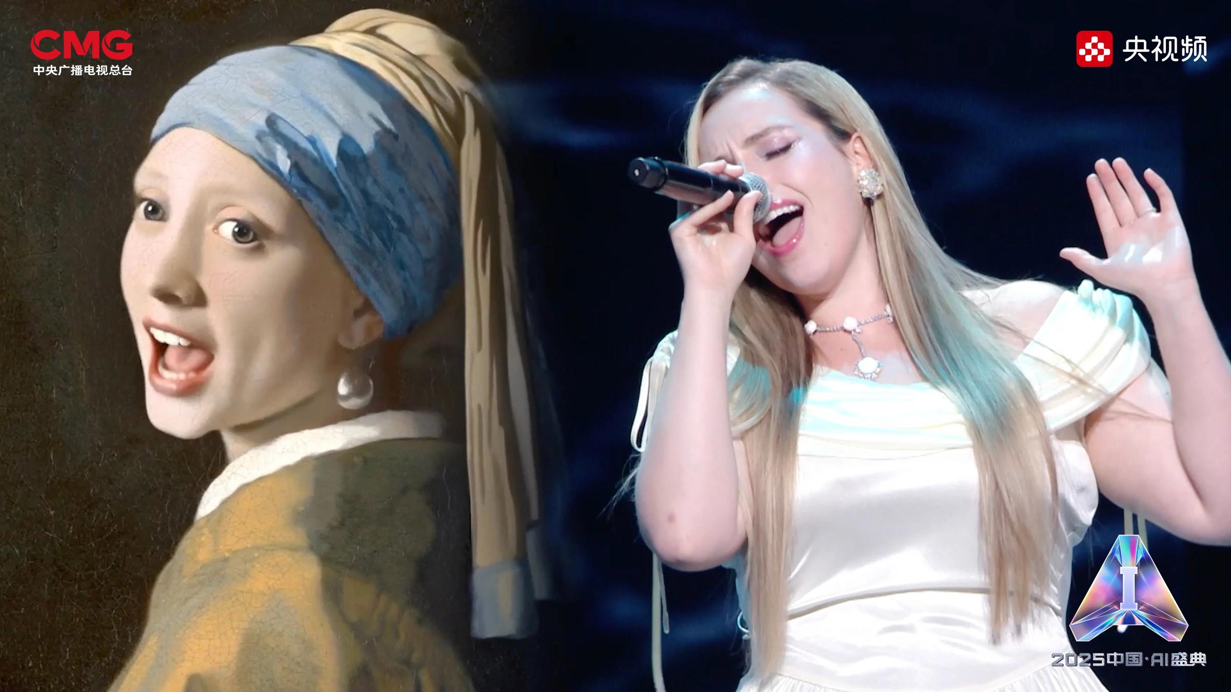 相AI相生,是藝術想象的無限延展。在AI技術的賦能下,沉睡的文物重獲新生:圓明園“十二獸首”(復制品)聚首盛典舞臺,他們化身十二樂師與歌手阿云嘎共同演繹《浮光·十二獸首歸來》,向世界展現(xiàn)東方文化藝術的魅力;《戴珍珠耳環(huán)的少女》在MiniMax海螺(Hailuo02)視頻模型的驅動下翩然起舞,與歌手Grace Kinstler隔空對唱《This Is Me》;虛擬偶像“星瞳”與歌手黃齡突破次元壁,浪漫演繹金曲《玫瑰玫瑰我愛你》;根據(jù)歌手張英席、石倚潔、蔡程昱照片生成的數(shù)字人將與“本尊”同臺獻唱,以中、英、意等語言詮釋經(jīng)典歌劇歌曲《今夜無人入眠》;AIGC技術更讓兵馬俑開啟環(huán)球之旅,在東西方文明的對話中完成文化使者的使命。