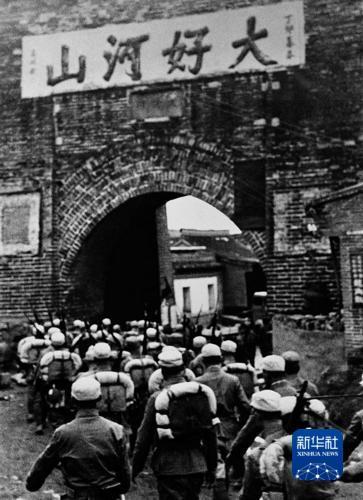 山海關(guān)的收復,不僅為人民軍隊進軍東北掃除了障礙,也成為中華民族戰(zhàn)勝日寇收復山河的象征。作為攝影家沙飛的學生,時任《冀熱遼畫報》記者的張進學拍攝到了我軍光復山海關(guān)的珍貴鏡頭。這張標志性照片被選作晉察冀畫報第9、10期合刊封面發(fā)表,是反映八路軍軍事勝利的重要攝影作品之一。