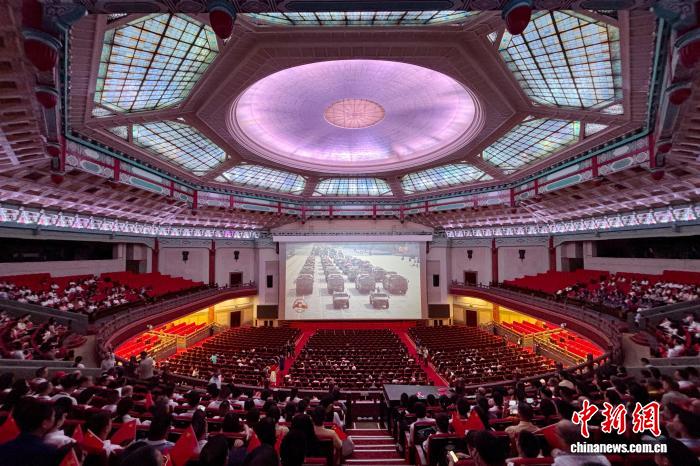 為紀(jì)念中國人民抗日戰(zhàn)爭暨世界反法西斯戰(zhàn)爭勝利80周年,“銘記歷史,傳承薪火”千人觀看閱兵直播活動當(dāng)天在廣州舉行。其中,來自美國、英國、新西蘭、馬來西亞等25個國家的青年僑領(lǐng)、歸僑代表等60人在中山紀(jì)念堂與各行業(yè)代表、學(xué)生代表等1000余人共同觀看直播。
