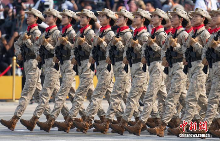 9月3日,紀念中國人民抗日戰(zhàn)爭暨世界反法西斯戰(zhàn)爭勝利80周年大會在北京隆重舉行。圖為民兵方隊接受檢閱。該方隊全部由女民兵組成,這是民兵首次亮相以紀念抗戰(zhàn)勝利為主題的閱兵活動。 中新網記者 趙文宇 攝
