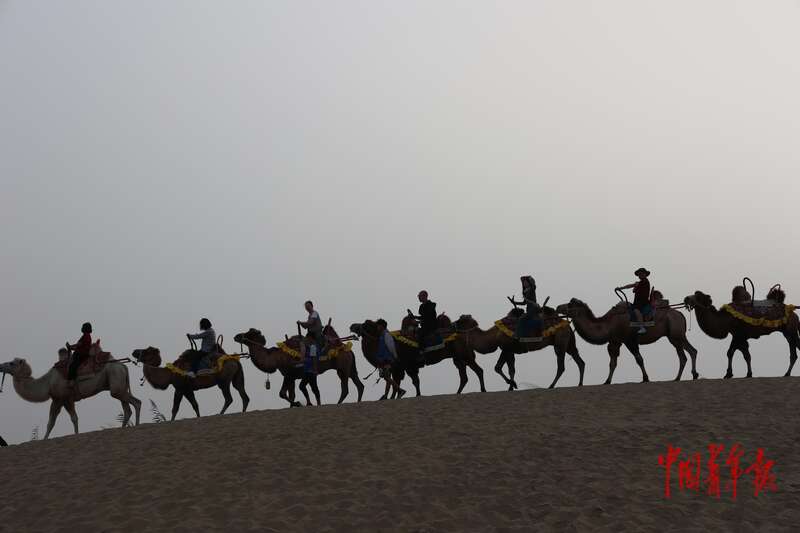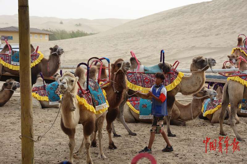 9月9日,新疆巴州尉犁縣羅布人村寨景區(qū),游客騎駱駝觀光。中青報·中青網記者 王鑫昕/攝