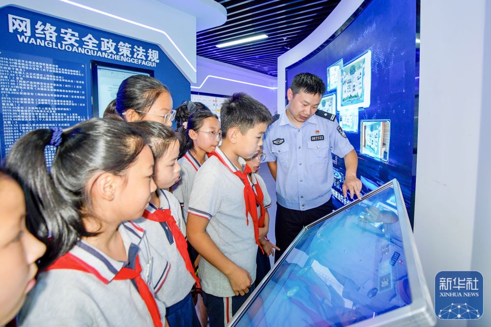 9月15日,在山東省臨沂市沂南縣第三實(shí)驗(yàn)小學(xué),沂南縣公安局網(wǎng)絡(luò)安全保衛(wèi)大隊(duì)的民警給學(xué)生普及網(wǎng)絡(luò)安全知識(shí)。新華社發(fā)(王彥冰攝)