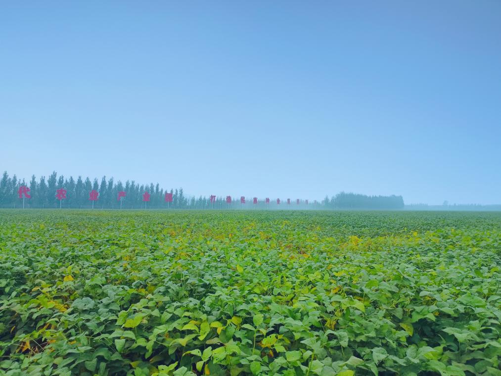在山東省濟(jì)寧市嘉祥縣國家現(xiàn)代農(nóng)業(yè)產(chǎn)業(yè)園大豆原種繁育基地,一片片大豆長(zhǎng)勢(shì)喜人。(受訪者供圖)