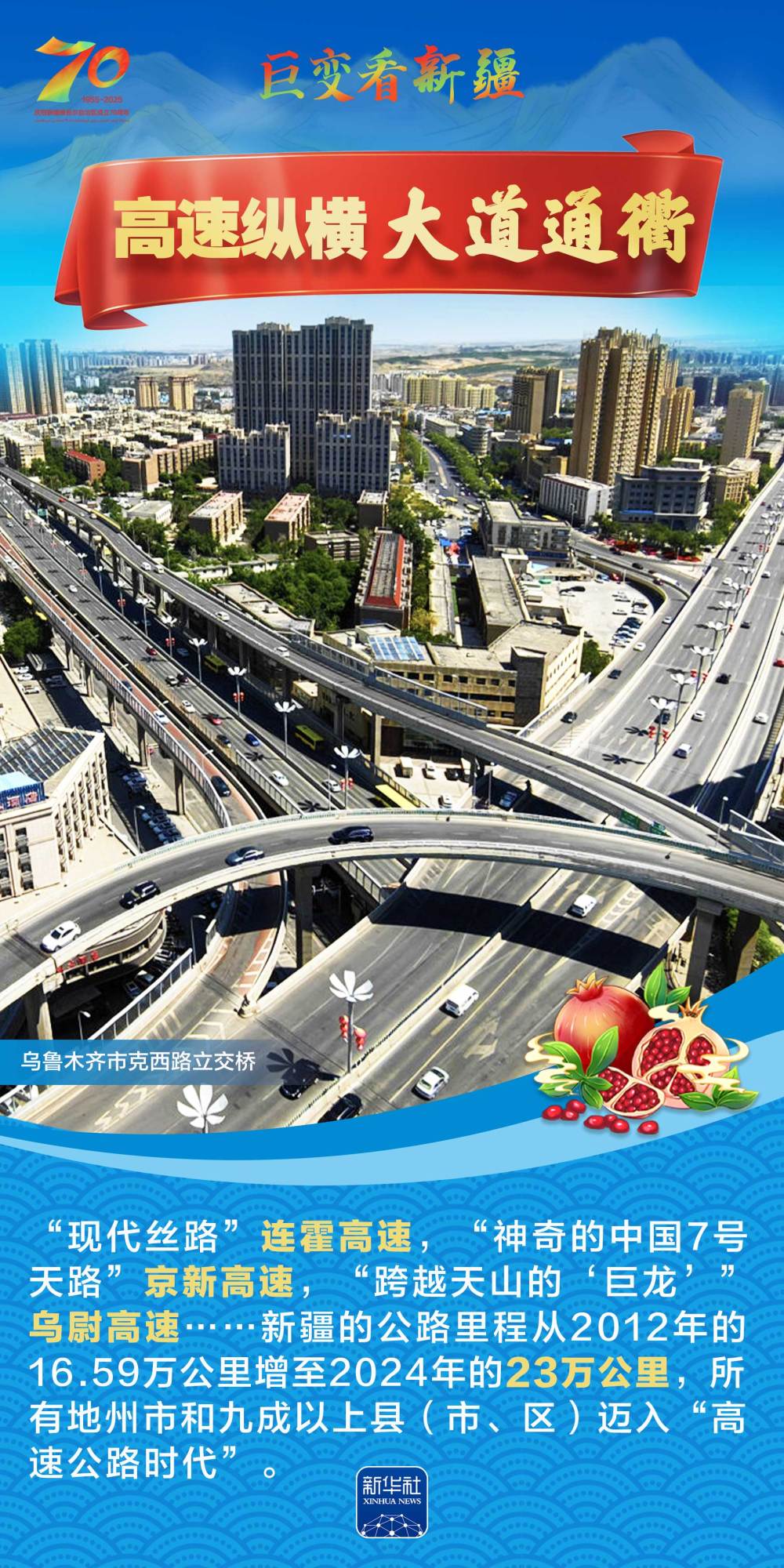 今年是新疆維吾爾自治區(qū)成立70周年。70年來,新疆的交通建設(shè)日新月異。從駝鈴聲聲、馬蹄嘚嘚到鐵流縱橫、銀鷹高翔,一座座交通樞紐輻射四方,一條條“鋼鐵巨龍”蜿蜒逶迤,一個(gè)個(gè)支線機(jī)場(chǎng)星羅棋布,現(xiàn)代化的新疆立體交通網(wǎng)絡(luò)日益形成。讓我們跟隨這組海報(bào),一起見證穿越“三山兩盆”、貫通歐亞大陸的新時(shí)代新疆交通畫卷。