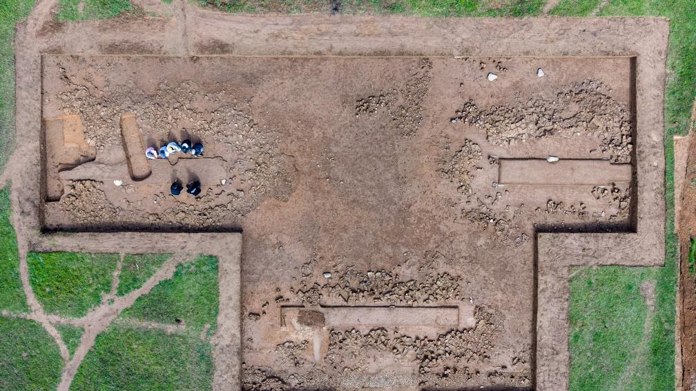 這是10月15日拍攝的甘肅省隴南市禮縣四角坪遺址考古發(fā)掘現(xiàn)場(無人機照片)。新華社記者 陳斌 攝