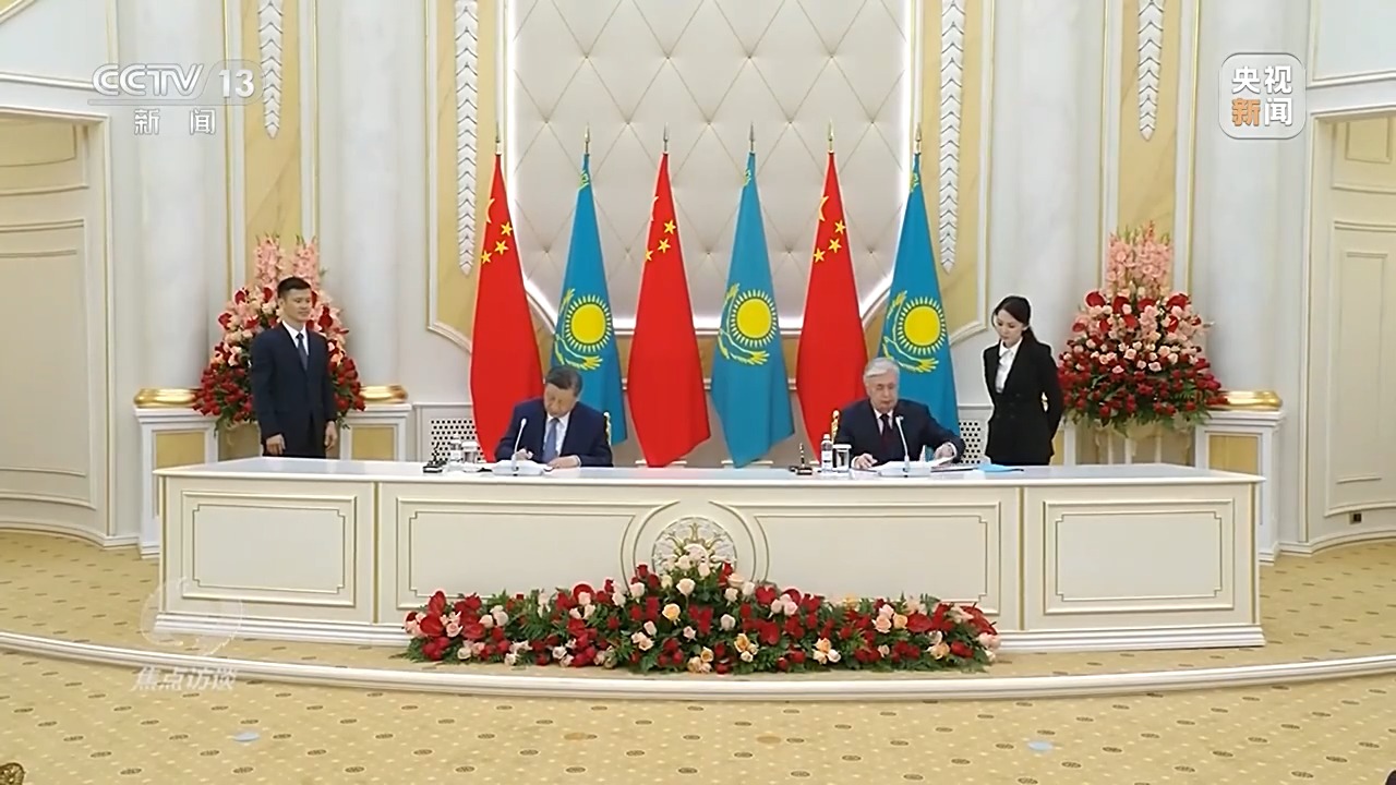 兩國(guó)元首共同簽署《中華人民共和國(guó)和哈薩克斯坦共和國(guó)聯(lián)合聲明》,見(jiàn)證簽署數(shù)十項(xiàng)合作文件并共同出席兩國(guó)文化中心和北京語(yǔ)言大學(xué)哈薩克斯坦分校揭牌儀式。
