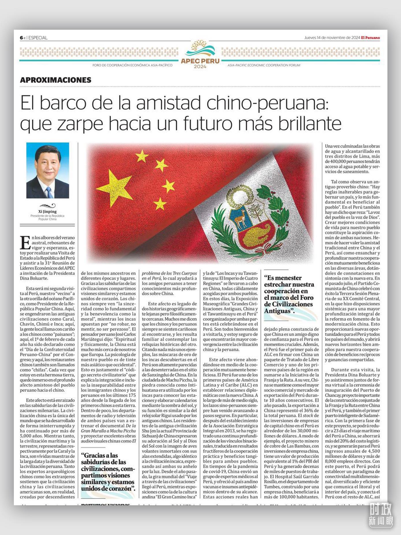 △習主席在《秘魯人報》發(fā)表題為《讓中秘友好之船揚帆遠航》的署名文章。(總臺國廣記者吳倩)