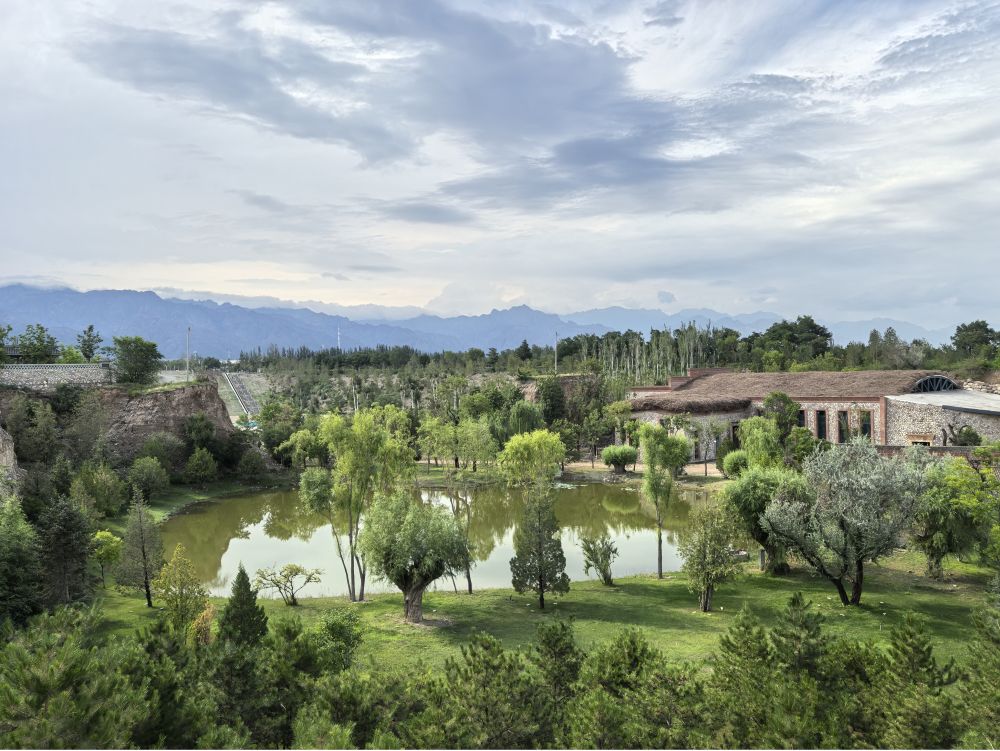 寧夏銀川市西夏區(qū)鎮(zhèn)北堡鎮(zhèn)源石酒莊經(jīng)過修復(fù)的廢棄礦坑,如今滿目新綠(2025年7月8日攝)。新華社記者 馬麗娟 攝