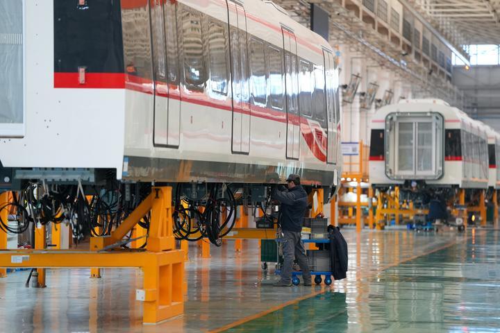 2025年2月14日,工作人員在京投裝備河北京車智能制造基地總組裝車間內(nèi)工作。京投裝備河北京車智能制造基地位于河北省保定市,是貫徹京津冀協(xié)同發(fā)展戰(zhàn)略的重要項目?!氨本┭邪l(fā)+河北制造” 的模式,既發(fā)揮了北京的創(chuàng)新優(yōu)勢,又拉動了河北當?shù)氐木蜆I(yè)和經(jīng)濟,對培育首都軌道交通及其關(guān)鍵零部件等上下游產(chǎn)業(yè)、提升河北高端裝備制造水平發(fā)揮了推動作用。