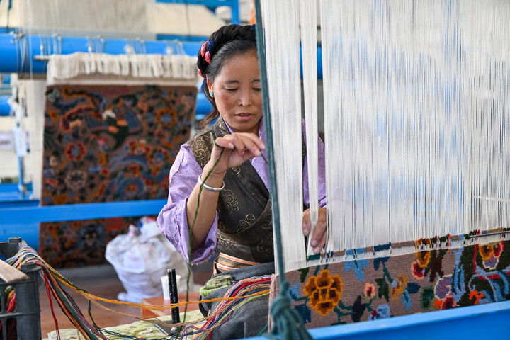 2025年7月18日,江孜藏毯文化發(fā)展有限責任公司的員工在生產(chǎn)車間內(nèi)編織藏毯。西藏日喀則市江孜縣是著名的藏毯(藏族稱為“卡墊”)之鄉(xiāng),織毯歷史悠久。藏族卡墊織造技藝于2006年被列入國家級非物質(zhì)文化遺產(chǎn)代表性項目名錄。近年來,江孜藏毯在守護傳統(tǒng)技藝的同時積極創(chuàng)新,通過建立合作社、開辦技能培訓(xùn)班等方式擴大靈活就業(yè)規(guī)模,讓更多人在家門口織藏毯增收。