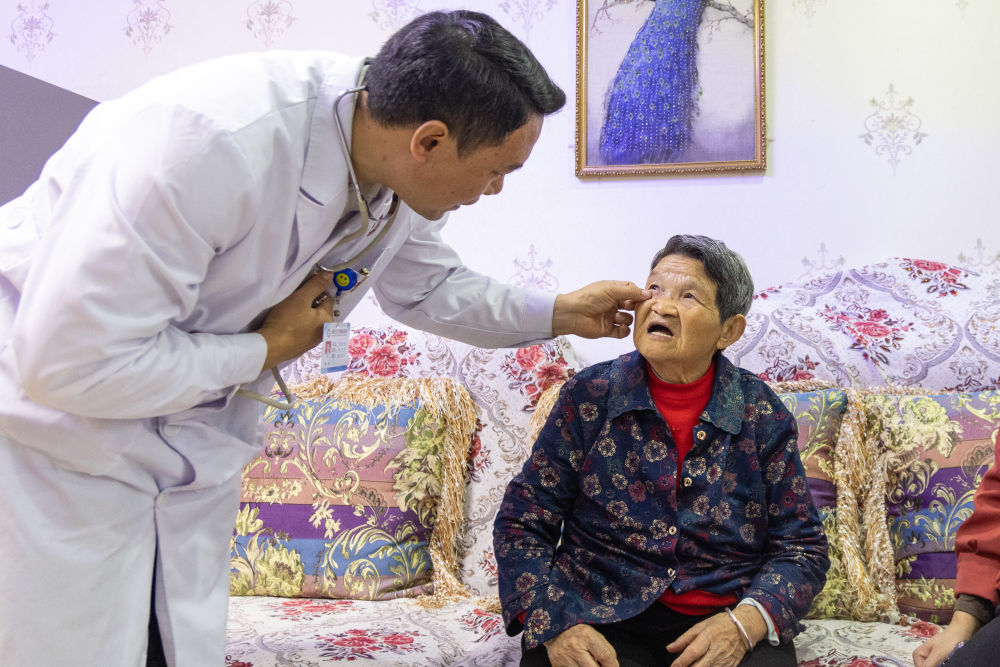 2024年10月10日,一名家庭醫(yī)生在重慶高新區(qū)白市驛鎮(zhèn)驛站社區(qū)上門為老人做健康檢查。近年來,重慶高新區(qū)積極探索養(yǎng)老服務創(chuàng)新形式,通過“智慧養(yǎng)老云平臺”監(jiān)測健康數(shù)據(jù),為獨居、空巢、失能等困難老年人提供生活照料、精神慰藉、文娛教育、健康管理等個性化服務,讓轄區(qū)老年人享受到優(yōu)質(zhì)、便捷的居家養(yǎng)老服務。