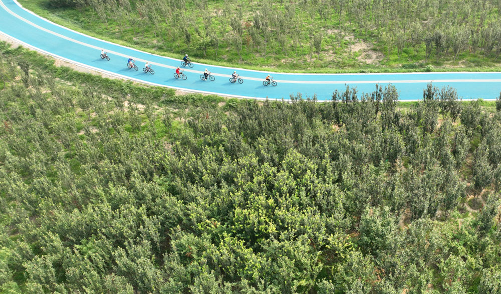 2024年7月10日,自行車愛好者在石家莊市環(huán)城綠道北線騎行休閑。近年來,石家莊依托滹沱河、環(huán)城水系等優(yōu)質(zhì)景觀資源,通過架設橋梁、提升景觀和完善綠地等措施,打造景美、智游、暢達的城市綠道健身體系,加強環(huán)城綠道與中心城區(qū)串聯(lián)銜接,方便市民無障礙步行或騎行,提升群眾生活幸福感和獲得感。