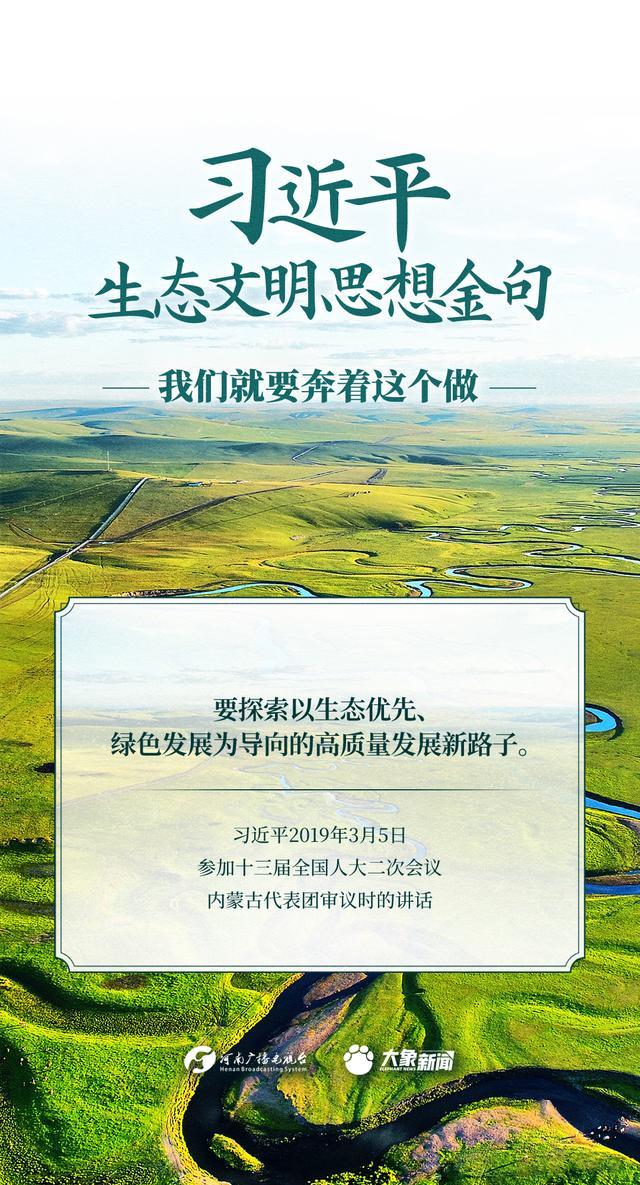 黨的十八大以來,習(xí)近平總書記把生態(tài)文明建設(shè)擺在治國理政突出位置,大力推動生態(tài)文明理論創(chuàng)新、實(shí)踐創(chuàng)新、制度創(chuàng)新,創(chuàng)造性提出一系列新理念新思想新戰(zhàn)略,形成了習(xí)近平生態(tài)文明思想,對生態(tài)文明建設(shè)的時代之問、世界之問、人民之問作出的科學(xué)解答。大象新聞推出《習(xí)近平生態(tài)文明思想金句》系列策劃,今天推出《我們就要奔著這個做》。
