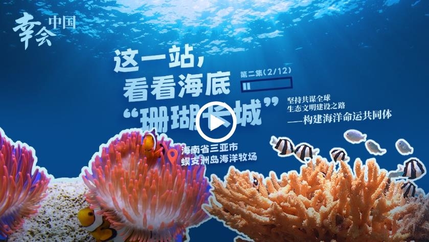 這一站,我們來到了海南三亞,一同潛入這片生命蓬勃的藍(lán)色世界。在蜈支洲島,中國首個熱帶海洋牧場,海洋守護者們花了數(shù)十年時間培育了30萬株珊瑚,構(gòu)筑起了一座真正的海底“長城”。海底的珊瑚如森林般繁茂,消失的魚群也因此重回海底家園,海洋生態(tài)仿佛重獲新生。在習(xí)近平生態(tài)文明思想的指引下,這里的生態(tài)修復(fù)不僅彰顯了保護的重要性,更是共謀全球生態(tài)文明之路的生動實踐。中國堅持守護海洋生態(tài),用行動書寫“海洋命運共同體”的信念。
