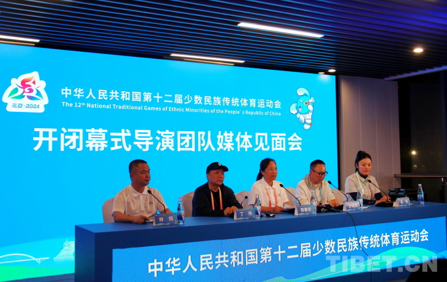 中國西藏網(wǎng)訊 11月22日,中華人民共和國第十二屆少數(shù)民族傳統(tǒng)體育運(yùn)動(dòng)會(huì)(以下簡稱運(yùn)動(dòng)會(huì))在海南三亞開幕。開幕式結(jié)束后,運(yùn)動(dòng)會(huì)開閉幕式導(dǎo)演團(tuán)隊(duì)媒體見面會(huì)在三亞市體育中心舉行。導(dǎo)演團(tuán)隊(duì)就開閉幕式、主創(chuàng)團(tuán)隊(duì)、演員排練和幕后的精彩故事進(jìn)行了介紹。