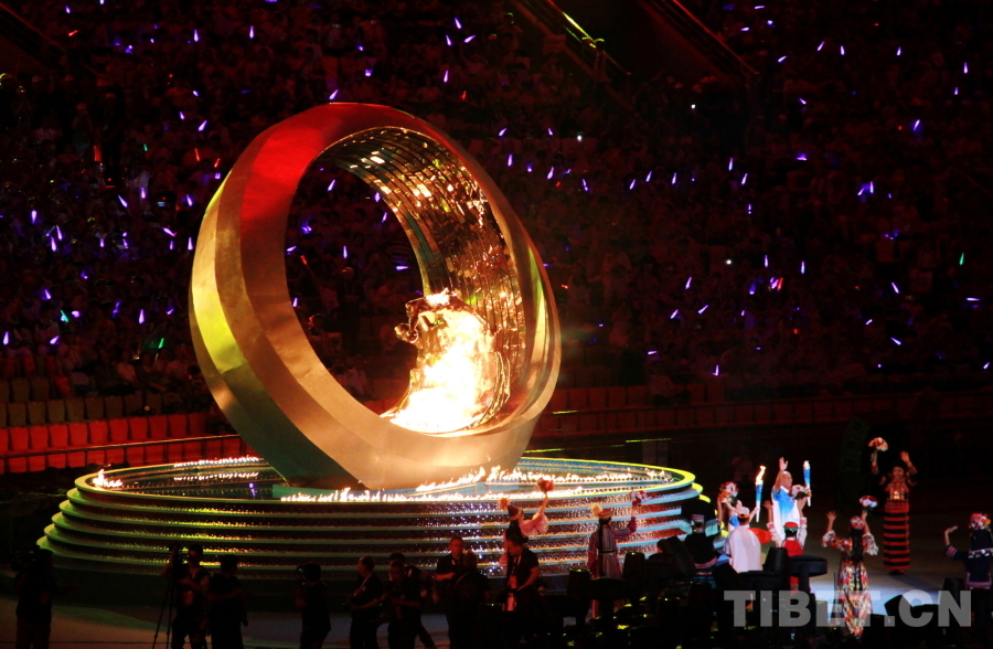 圖為第十二屆全國少數(shù)民族傳統(tǒng)體育運(yùn)動(dòng)會(huì)主火炬點(diǎn)燃 攝影:劉莉