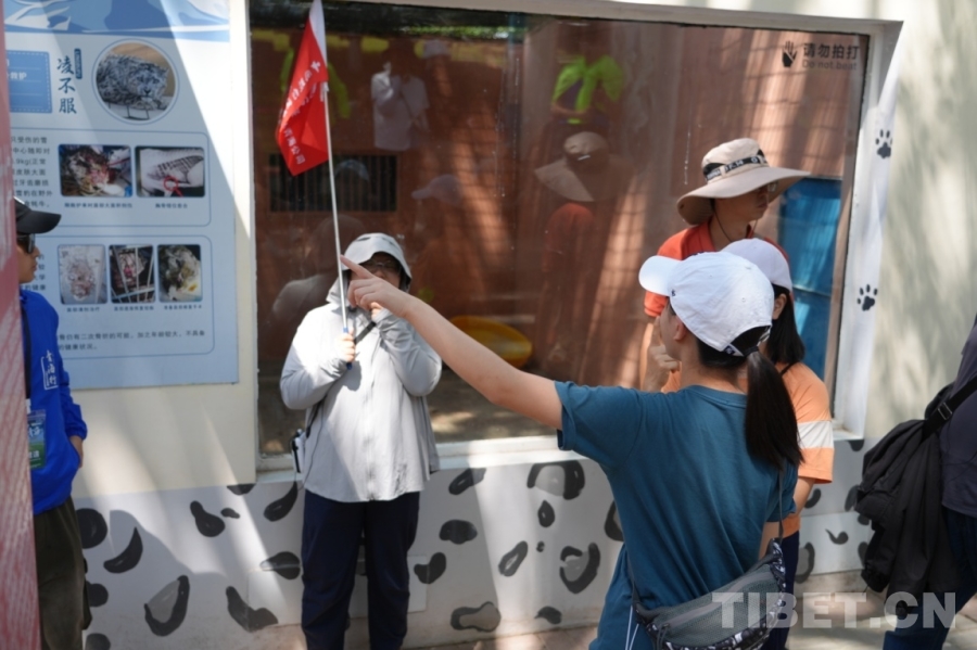 圖為香港學(xué)生陳曦彤在青藏高原野生動物園詢問有關(guān)雪豹“凌不服”的情況 攝影:王茜