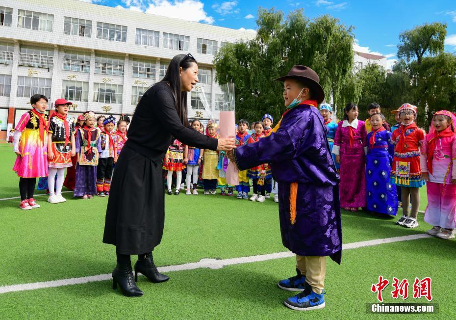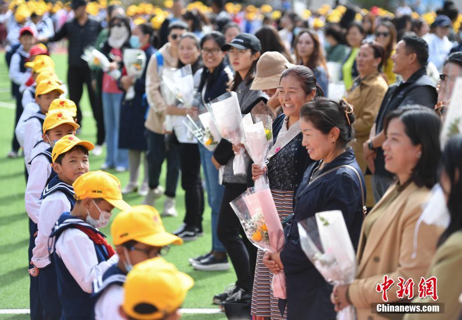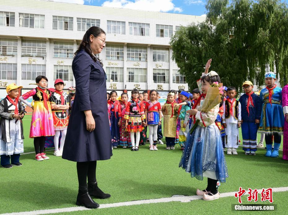 9月10日是第37個(gè)教師節(jié),西藏拉薩市第一小學(xué)舉行了以“譜團(tuán)結(jié)新篇 育桃李芬芳 感教師恩情”為主題的慶祝活動(dòng)。學(xué)生以敬禮、獻(xiàn)花、擁抱等方式,表達(dá)對老師的感恩之情。中新社記者 貢嘎來松 攝