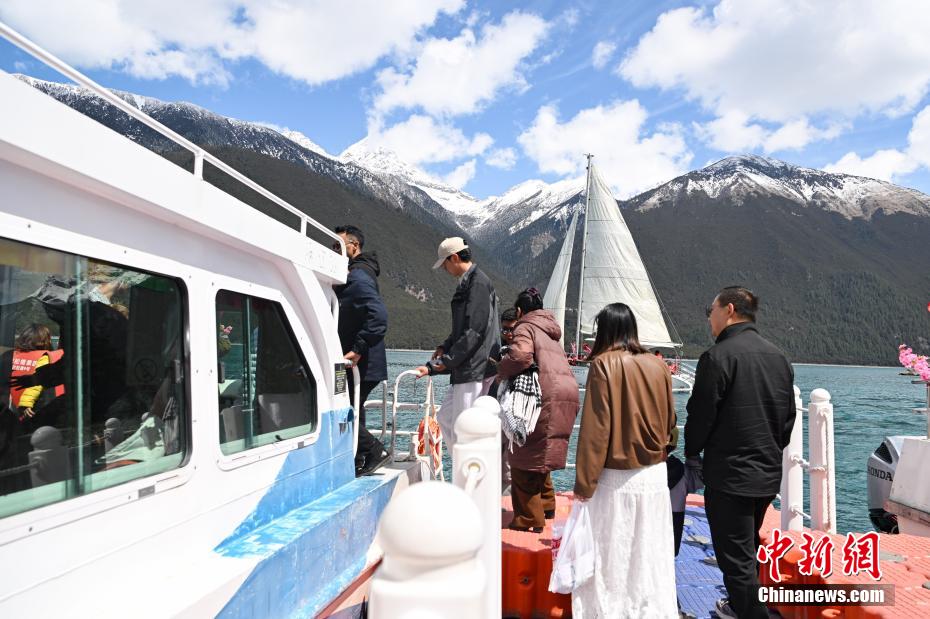 4月6日,西藏林芝工布江達(dá)縣巴松措景區(qū)游人如織。春日里,湛藍(lán)湖水與巍峨雪山相映成趣,游客游玩湖心島或乘船游覽,沉醉在這湖光山色中。圖為游客準(zhǔn)備乘船游覽巴松措。中新社記者 貢嘎來(lái)松 攝