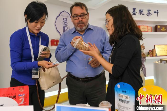 圖為6月28日,智利駐華大使巴勃羅·阿里亞蘭(中)在林芝經濟開發(fā)區(qū)參訪時品嘗青稞食品。中新社記者 江飛波 攝