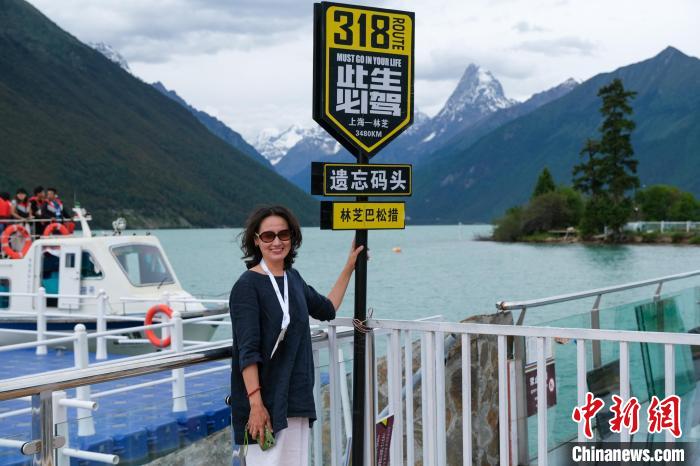 圖為6月28日,韓國錦成東株式會社總經理曲恬在參訪西藏林芝景區(qū)時留影。中新社記者 江飛波 攝