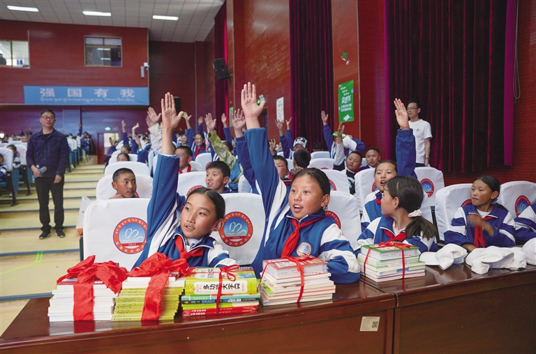 為慶祝中國(guó)共產(chǎn)黨成立104周年,迎接西藏自治區(qū)成立60周年,近日,自治區(qū)黨委宣傳部聯(lián)合自治區(qū)教育廳在達(dá)孜區(qū)中心小學(xué)開展“護(hù)苗2025·綠書簽”進(jìn)校園誦讀經(jīng)典活動(dòng)。