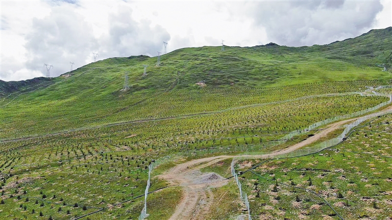 “歡迎來到南北山綠化工程現(xiàn)場!”指揮部工作人員頓珠迎面走來,熱情洋溢地說。他翻開隨身攜帶的工作日志,密密麻麻的記錄映入眼簾:“截至目前,我們已栽植161萬余株苗木,種植穴和網(wǎng)圍欄等基礎(chǔ)工程全部完工?!表樦闹敢ィy灰色的網(wǎng)圍欄在晨光中閃爍,如鋼鐵長城般蜿蜒于群山。