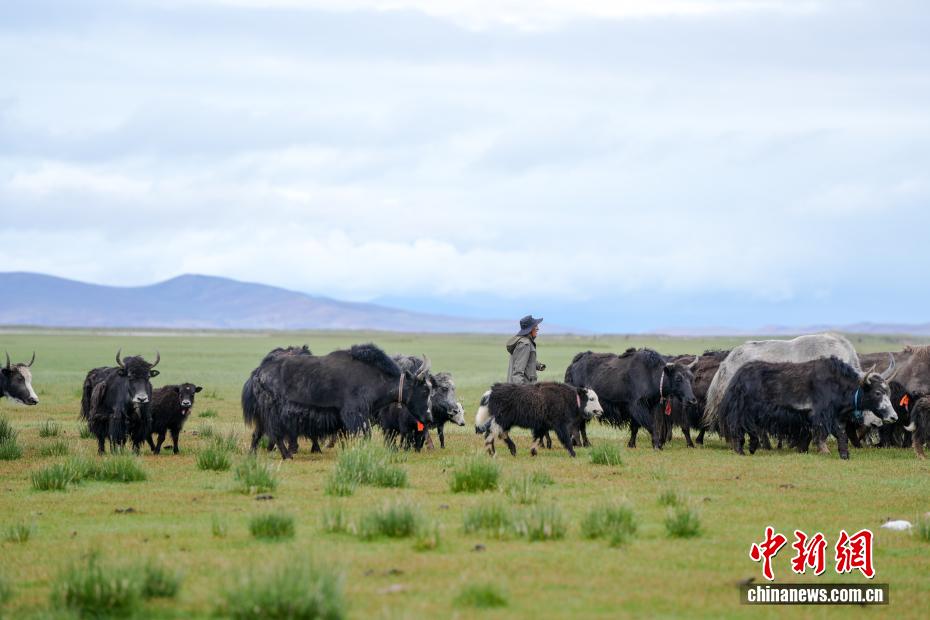 7月22日,在西藏阿里地區(qū)普蘭縣霍爾鄉(xiāng),牧民放牧牦牛。為實現(xiàn)更大的經(jīng)濟效益,霍爾鄉(xiāng)近年來探索建立牦牛養(yǎng)殖專業(yè)合作社,按當?shù)刈匀粭l件合理分配牦牛放牧地點,并將牛奶進行加工銷售,2023年該合作社的年總收入達到60余萬元人民幣,帶動牧民人均增收2萬余元人民幣。中新社記者 張祥毅 攝
