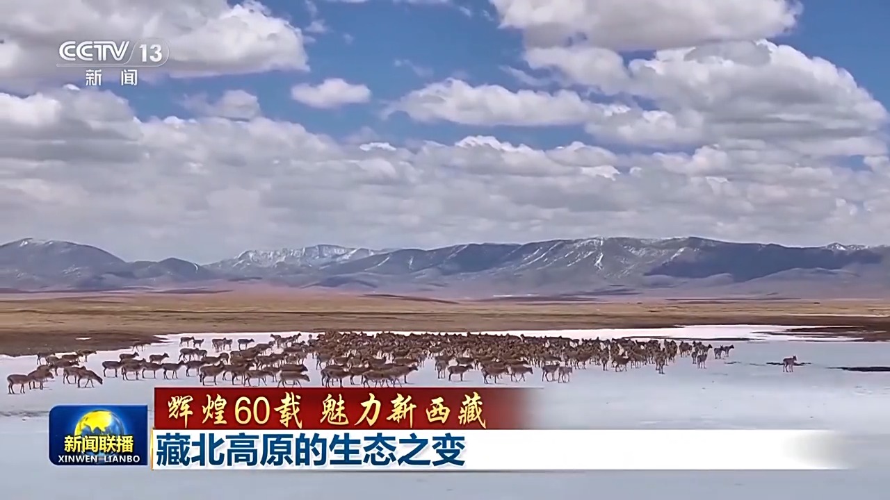 那曲市國家公園創(chuàng)建與建設(shè)領(lǐng)導(dǎo)小組辦公室負責(zé)人 何應(yīng)前:通過兩年多這個監(jiān)測,我們對重要的旗艦物種的恢復(fù)情況進行了一個初步的統(tǒng)計,像藏羚羊的數(shù)量穩(wěn)步提升。從最先開始的三江源國家公園唐北區(qū)域里面只有六萬多只,增加到現(xiàn)在的接近十六萬只。