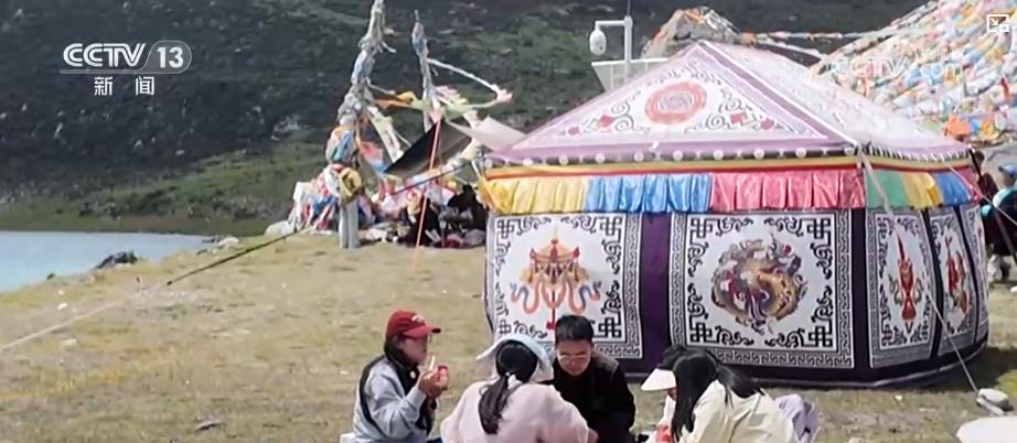 同樣在念青唐古拉山的懷抱中,海拔4100米的三色湖在陽(yáng)光照射下發(fā)出寶石的閃光,奪人心魄。在景區(qū)門(mén)口,桑登和妻子的車(chē)廂燒烤生意特別好。