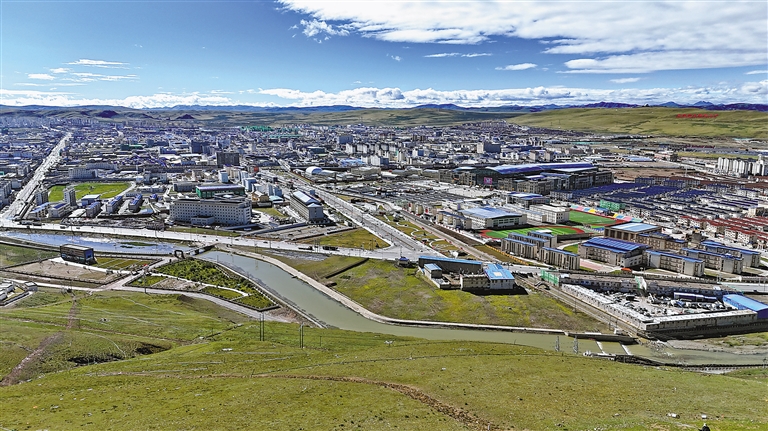 河流、樹(shù)林、湖泊、船只、公園、碑廊、牌坊、寺廟、白塔、亭閣、草原……把這些形態(tài)各異的城市景觀綴連在一起,便是平均海拔4500米的藏北重鎮(zhèn)那曲。