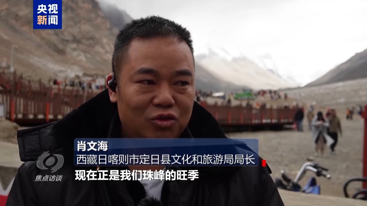 西藏日喀則市定日縣文化與旅游局局長 肖文海:現(xiàn)在正是珠峰的一個(gè)旺季,每天游客在3000人左右。我們?yōu)榱烁脼橛慰吞峁┮恍┓?wù),打造了品質(zhì)比較高的一些酒店,打造了這樣一個(gè)珠峰小鎮(zhèn)。