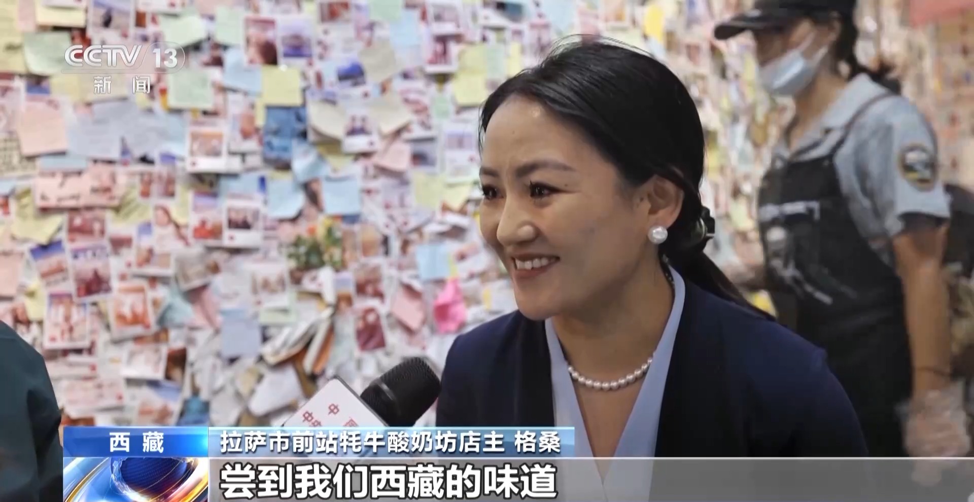 拉薩市前站牦牛酸奶坊店主 格桑:牦牛奶不能夠超過三個小時,超過三個小時就會壞。路好了之后,我們就可以到更遠(yuǎn)的地方去采購更新鮮的牦牛奶,包括蛋糕上面的青稞粉是日喀則的,人參果是從那曲運(yùn)過來的,現(xiàn)在交通便利了,所以我們可以用最地道的食材做最地道的酸奶,也能讓天南地北的游客嘗到我們西藏的味道。